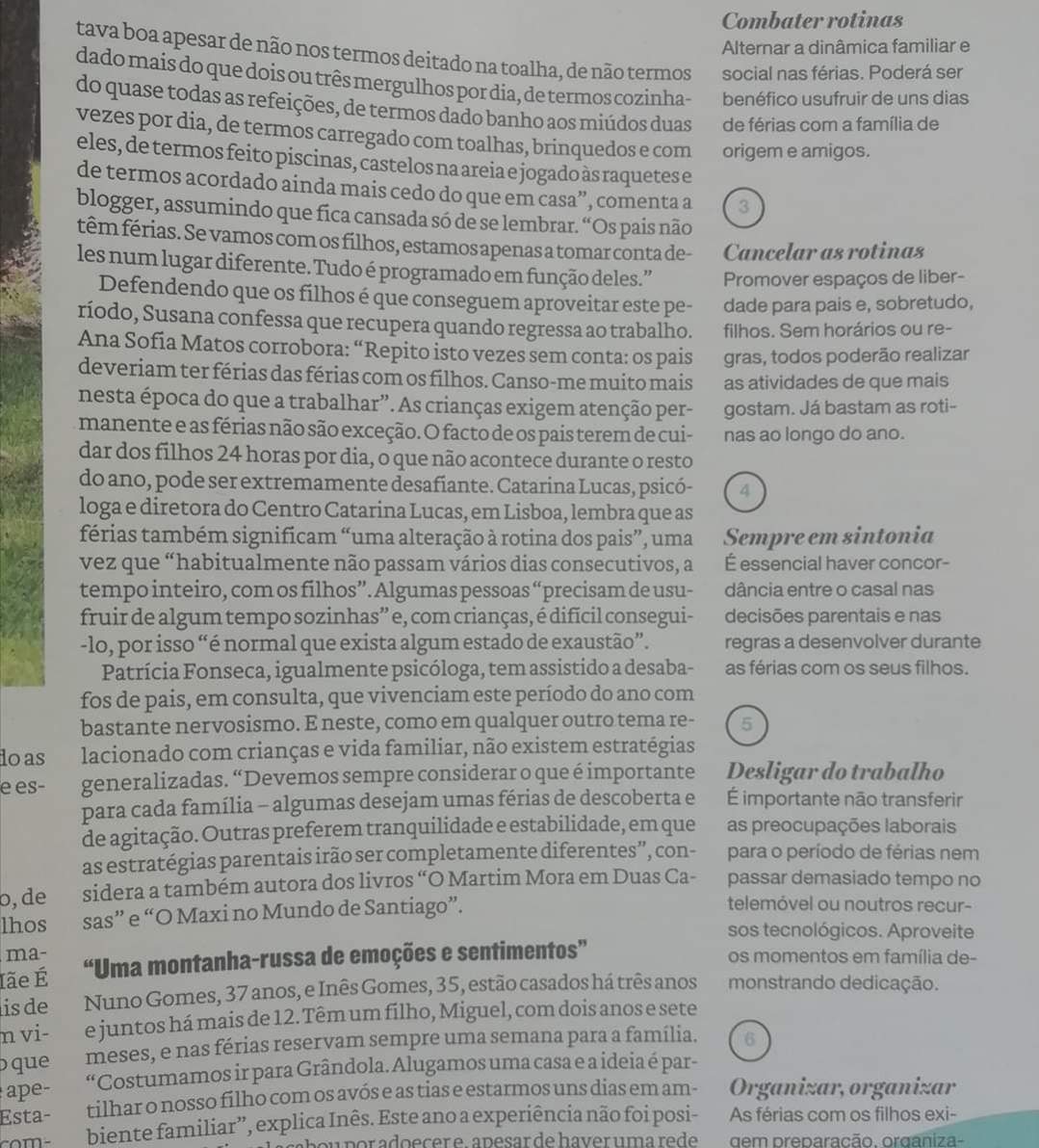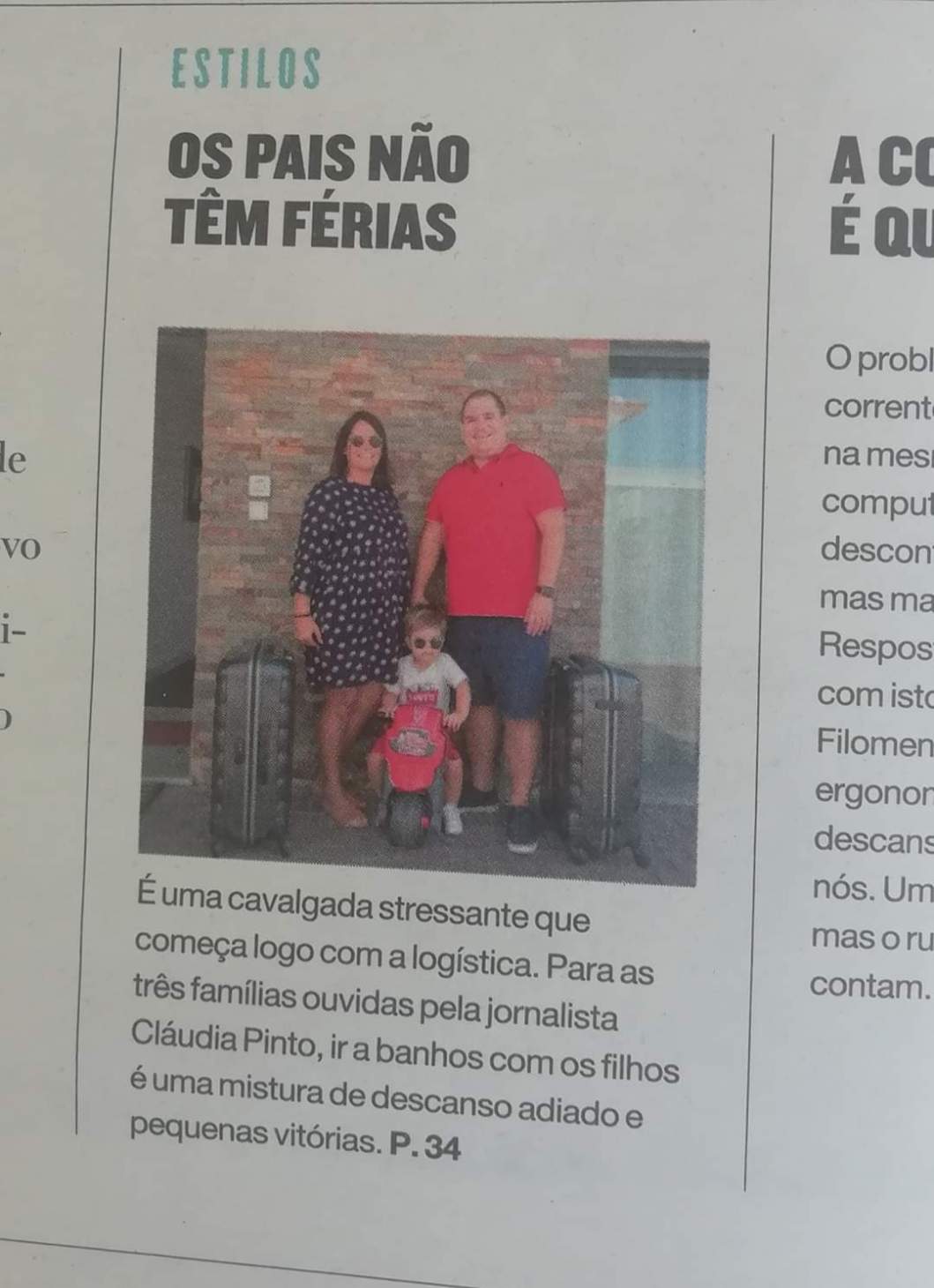 Artigo "Férias com filhos, pais exaustos" - Revista Magazine do Jornal de Noticias de 1 de Setembro de 2019
